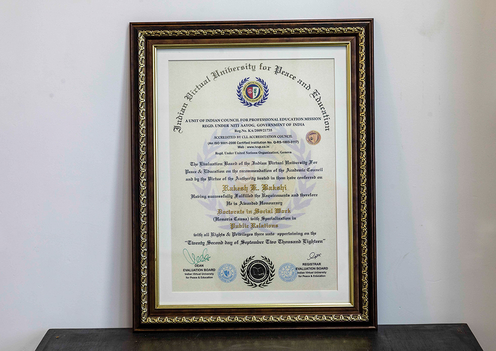 Awarded - Honorary “Doctorate” Degree For CSR By Chennai University